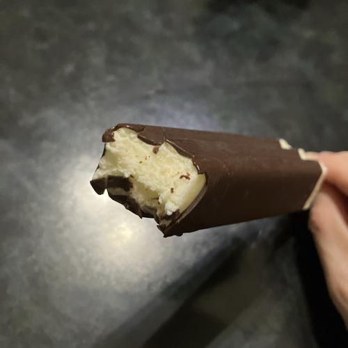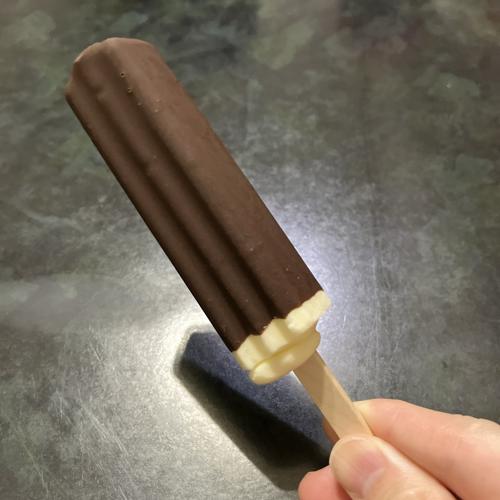 ピノ系の味わいなアイス、HERSHEY’Sの看板背負ってるだけあり、王道チョコとバニラでしっかり美味いです。