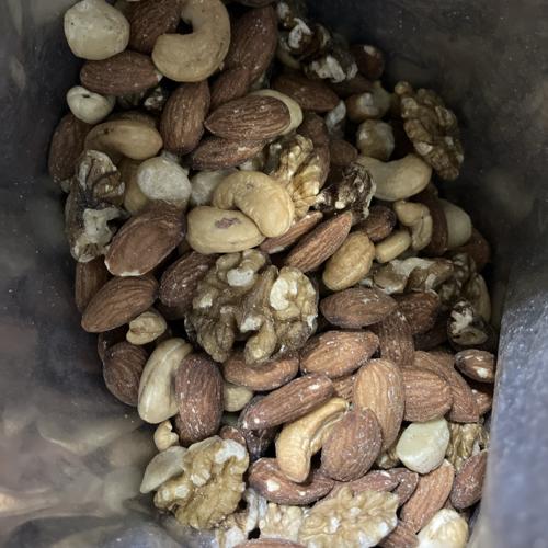いつもの3種(アーモンド、カシューナッツ、胡桃)に値段の高いマカダミアナッツが加わった。どれも基本的には適度にローストした美味しさがあります。今回、胡桃は独特な木の実臭さ、やや酸味がありました。水分多くて不十分なローストだったのかもしれません。カルフォルニア堅果のナッツは品質の個体差がある印象です。