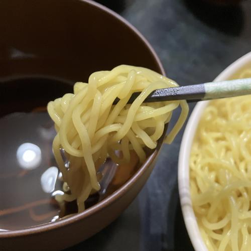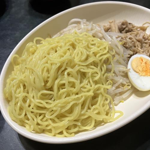 ざるそばのラーメンバージョン。つゆはつけるタイプなので、かなり味が濃いです。麺は硬めで食感良くて美味しかったです。