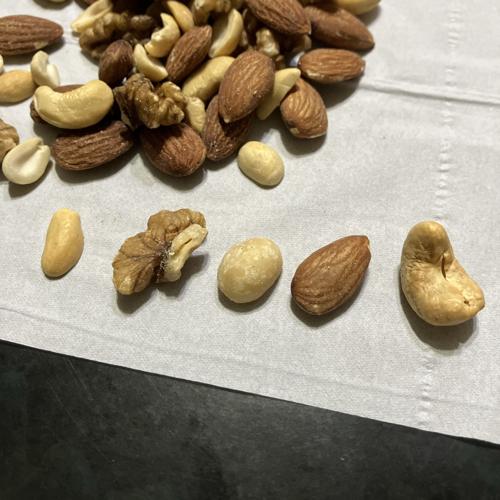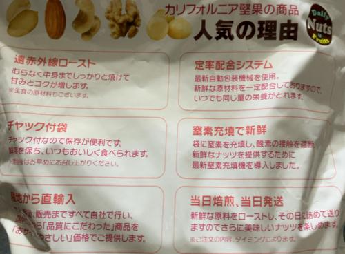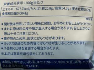 ピーナッツとアーモンド/胡桃/カシューナッツ+マカダミアナッツの組み合わせ。どれも適度にローストしてあり風味良いです。無塩ピーナッツはあまり無いので個人的にはプラスポイントです。ピーナッツの量バランスも良いですね。