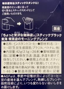 【食の記録】AGFさんの『「ちょっと贅沢な珈琲店®」 スティックブラック 東海 喫茶店のモーニングブレンド20本』