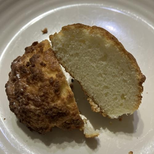 一見シュークリームのようなフォルム。キメが細かく美しい断面からも分かるかもですが、パッサパサのスコーンが大半を占める中、これは違っていて、口当たり良く優しい味わい、バターを混ぜた焼菓子の風味が最高です。他のスコーンのは別格の美味しさでした。