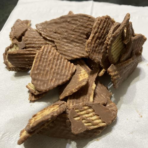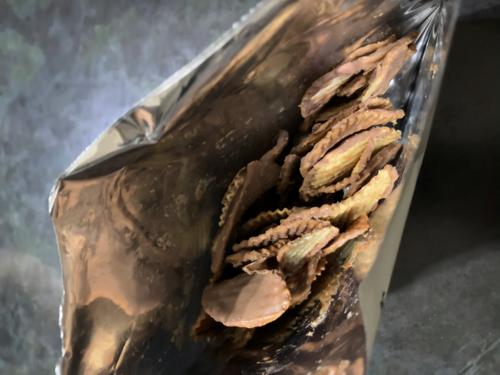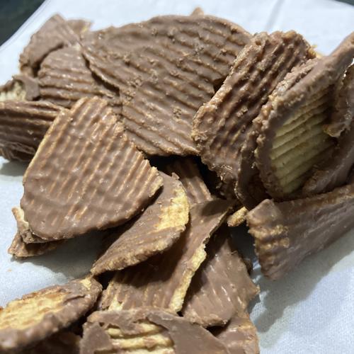 チョコの味がかなり主体となるチョコチップスが多い中、塩味とポテチの風味があるところにチョコがけされています。かなり美味しいですが、手がベトつくのでご注意ください。