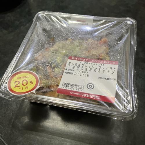 【食の記録】成城石井さんの「香川県産フレッシュアスパラと2種豆の胡麻和えサラダ」を頂きました。