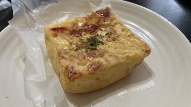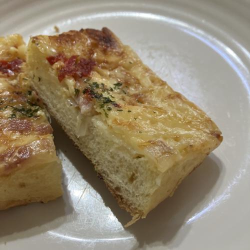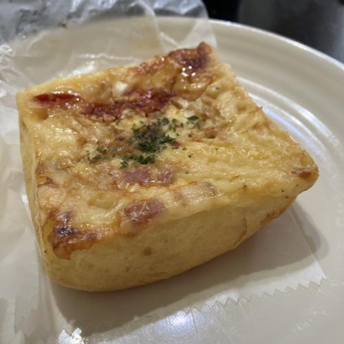 ピザトースト的な立ち位置の惣菜パン。チーズマヨネーズベースでタマネギとベーコンが乗っています。美味しかったです。