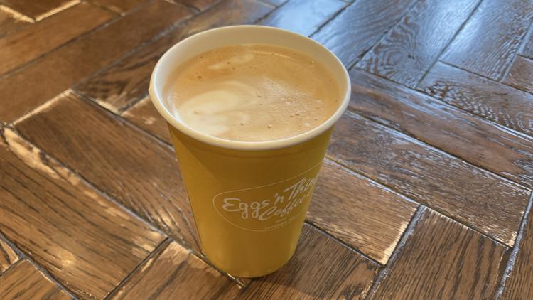 【食の記録】エッグスンシングスさんの「カフェラテ ホット」を頂きました。