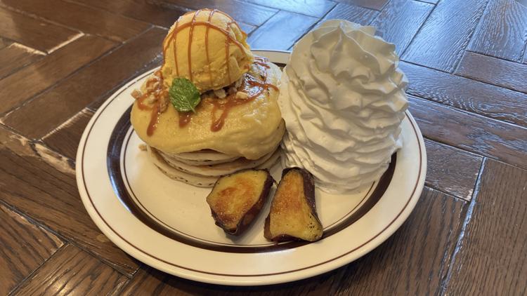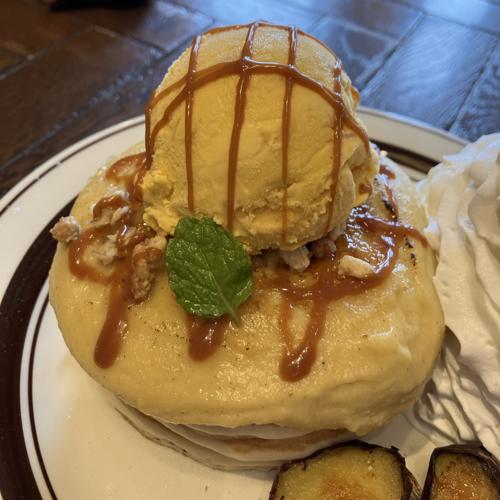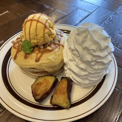 【食の記録】エッグスンシングスさんの「焼き芋ブリュレパンケーキ」【2025/10/23発売】