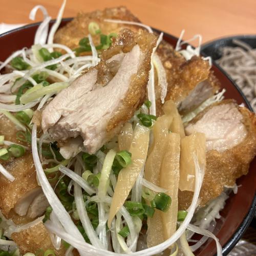 【食の記録】から好しさんの「“豪快一枚揚げ”信州名物 山賊焼き丼&もり蕎麦セット」を頂きました。