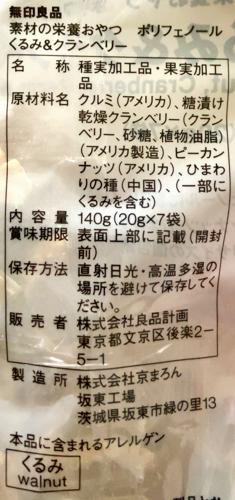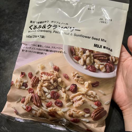 【食の記録】無印良品さんの「素材の栄養おやつ ポリフェノール くるみ&クランベリー」