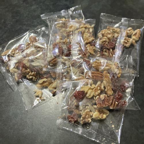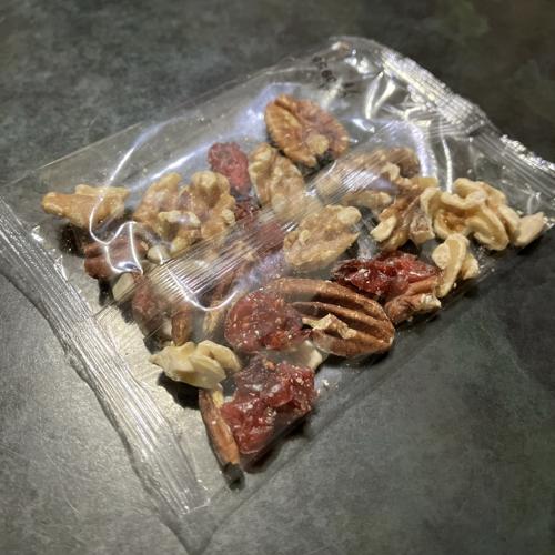 胡桃、クランベリー、ピーカンナッツ、ひまわりのタネの組み合わせ。個々にかなり風味良く、とても美味しいです。ピーカンナッツ濃厚適度な苦味とクランベリーの穏やかな酸味があります。