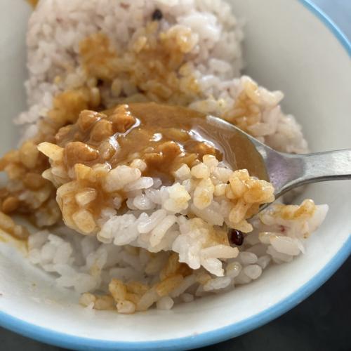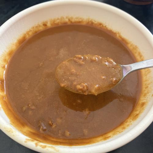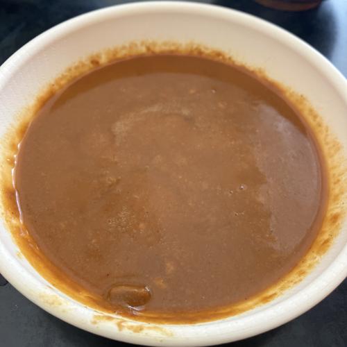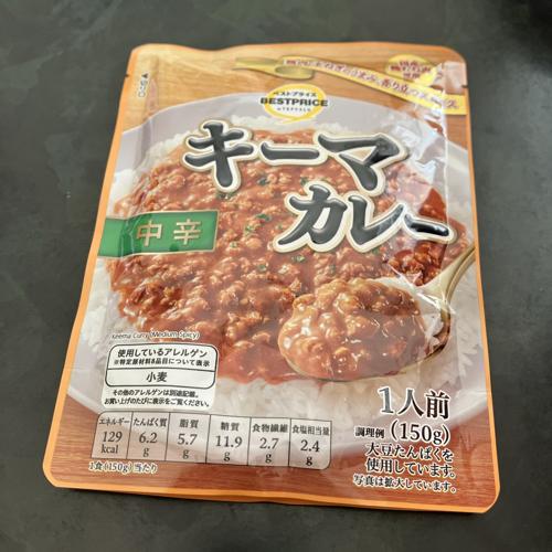 キーマカレーというと、水分少なめならイメージだが、こちらはスープカレーぽい感じ。申し訳程度な肉粒。味自体は悪くないです。安いので、お金ピンチな時は良いかも。