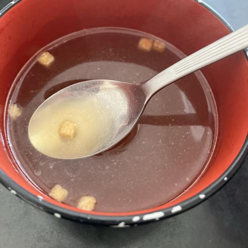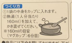 ちょっとだけクルトン入ってますが、後は具なし。ちょい濃くて辛い味わいなので量で調節。安かろう製品ですね。