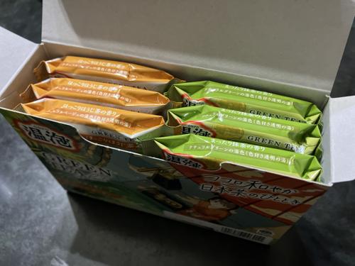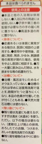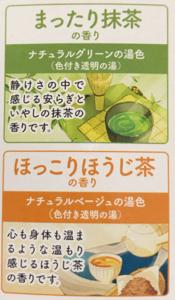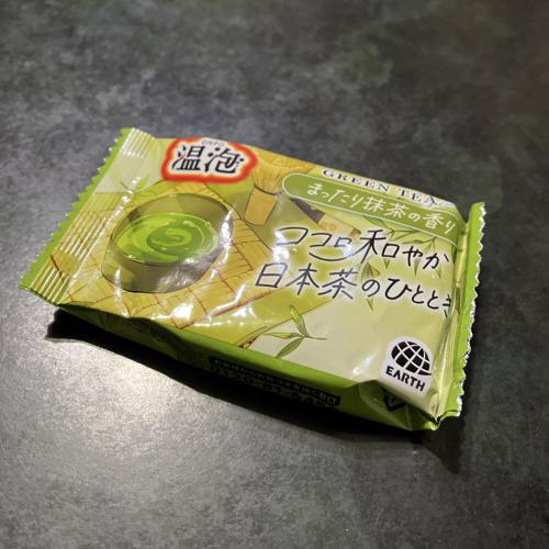 抹茶とほうじ茶の2種類あります。どちらもお茶の香りがお風呂場に漂います。これはこれで落ち着く感じで癒されます。