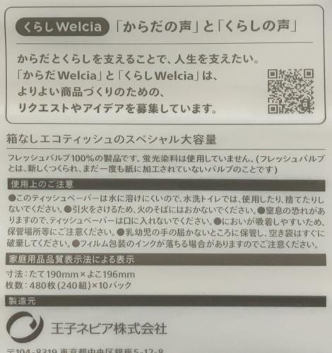 【購入記録】ウエルシアさんの「くらしWelcia 箱なしエコティッシュのスペシャル大容量」