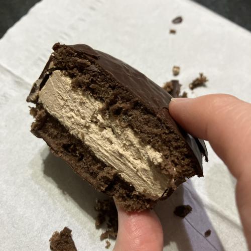 チョコパイ風ではありますが、全体的にしっとりしていて、クリームたっぷりスポンジと一緒に食べた時の口当たりが、普通のチョコレートケーキを食べているような錯覚をしていまきます。かなり美味しかったです。