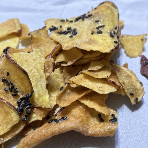 さつまいもの良い風味がします。芋けんぴのチップス版でバリバリ食感、胡麻もたくさん使ってあって良い味しています。とても美味しかったです。