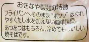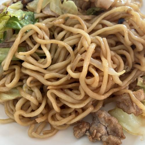 やや細くてやや平麺、食感は柔らかい焼そばです。スタンダードな味わいです。