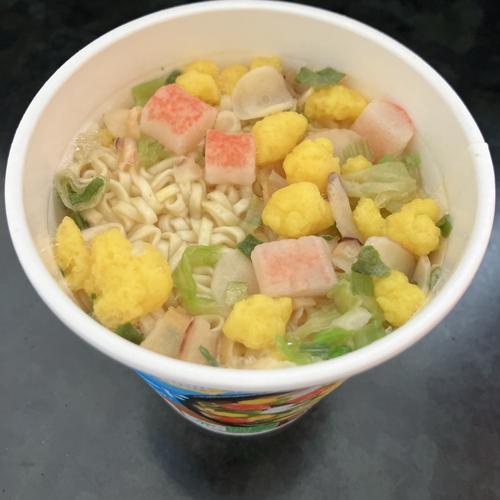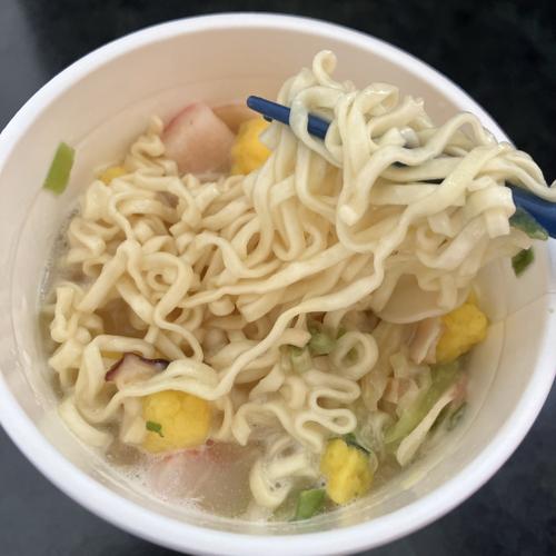 第一印象は日清カップヌードルにかなり近い味わいです。白湯スープは動物的なコクを適度に感じ悪くない仕上がりです。カップヌードルと大体同じクオリティで値段が安い印象。100円の低価格とあって、敏腕主婦なら1食100円の腕の見せ所だけど、苦学生やサラリーマンはこれとおにぎりで凌ぐの悪くない。なかなか美味しかったです。