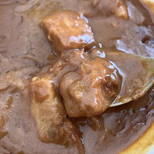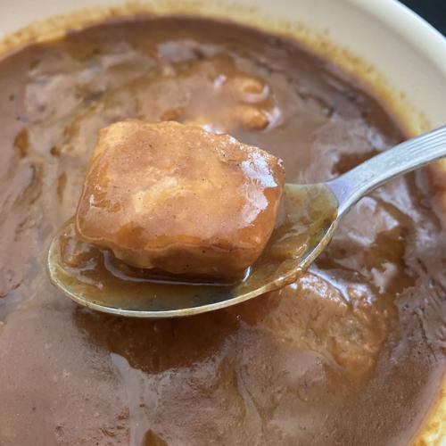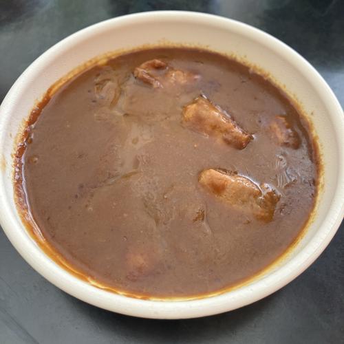 食べやすい辛さ、少し甘味も感じられますが、スパイス効いていて大人でも満足出来る美味しさです。豚肉がごろりと入ってるのは嬉しいですね。