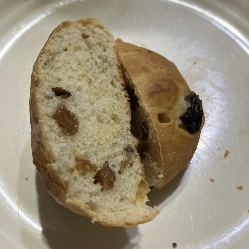 特段尖った特徴は無いものの、パクパク食べられる、優しい味わいの葡萄パンです。お店のコースの添え物であると嬉しい系です。