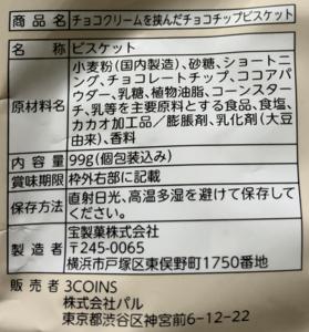 【食の記録】3COINSさんの「おかしもん チョコクリームを挟んだチョコチップビスケット」