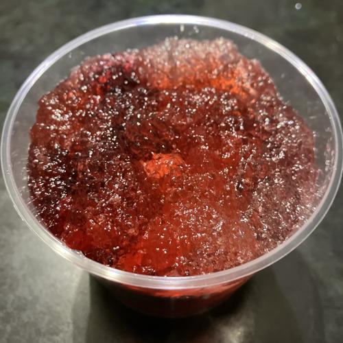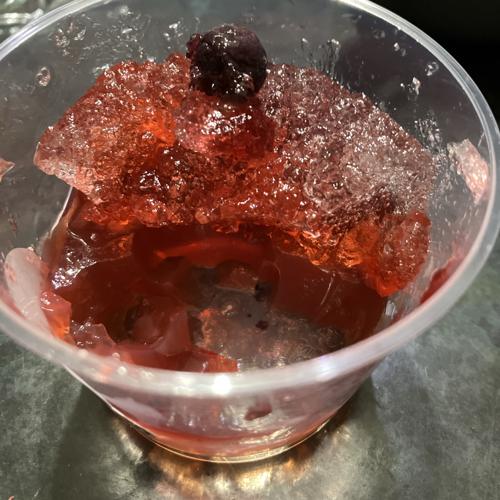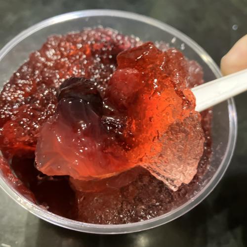 上部ジュレ、下部ゼリーのスイーツ。固形のベリーと、ザクロがしっかり入っていて、粒カリカリ、さっぱり甘酸っぱみが良いです。とても美味しかったです。