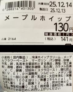 凄いメープルの香りで中のホイップクリームはそこまで主張せずメープルやパンの良さを引き立てるタイプ。ふんわり食べ応えあるパン生地で、とても美味しかったです。