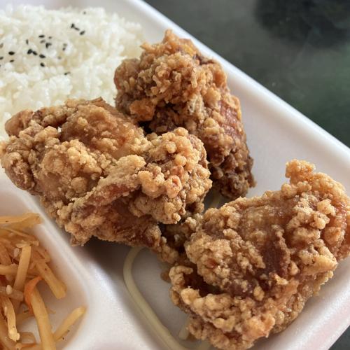 メインの醤油からあげはニンニクと塩をしっかり効いてた、メリハリのある味わい。後から甘味もやってきます。外側カリカリ、中ジューシーで流石に美味しい!ご飯が素晴らしく美味しい。炊き立て?なのか水分量やや多めで、味の濃いからあげにぴったり合います。からあげとご飯以外は、本当に添え物程度で、そんなもんだと思っておきましょう。