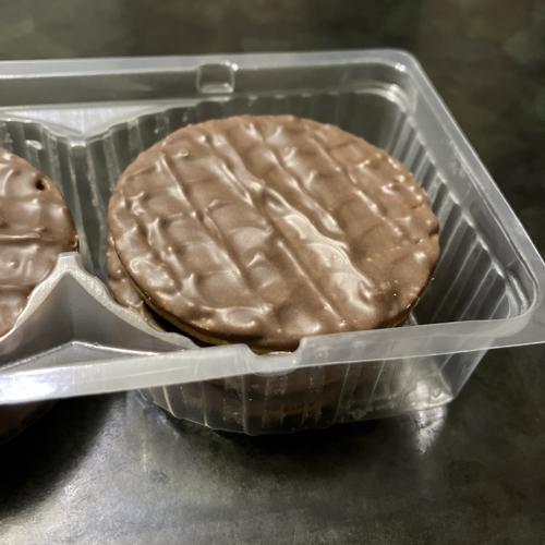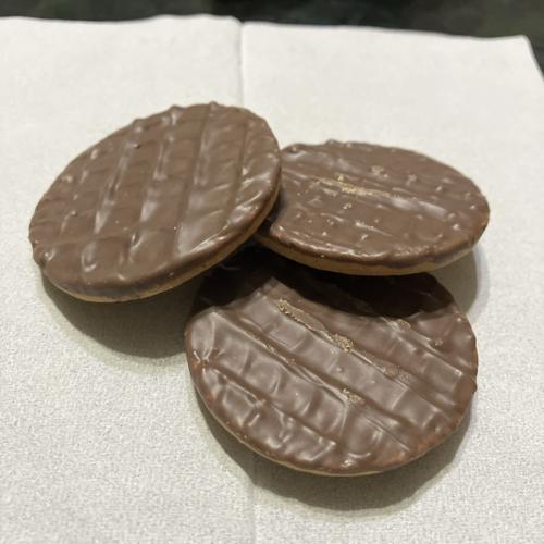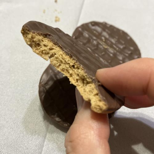 チョコ的な風味はないですが、見た目も食べた食感も本当にチョコレートっぽいです。マクビティみたいで美味しい。全粒粉ビスケットなのもポイントですね。