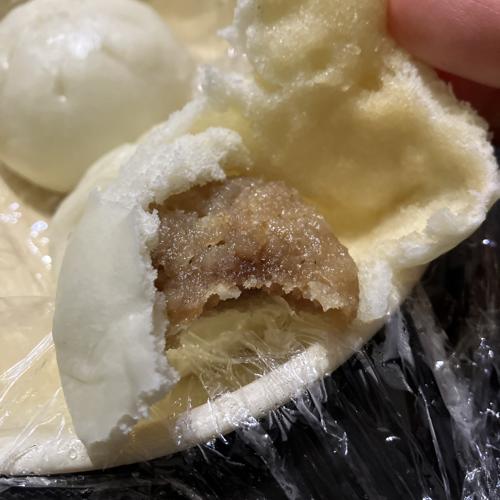 ちょっと中身がスカスカ気味で、豚まんらしい匂いがします。皮はやや甘で中身のあんはあんまり肉っぽくない感じでした。