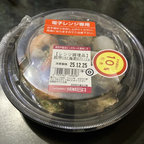 【食の記録】成城石井さんの「紋甲いかと海老のアヒージョ」を頂きました。