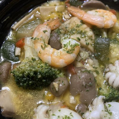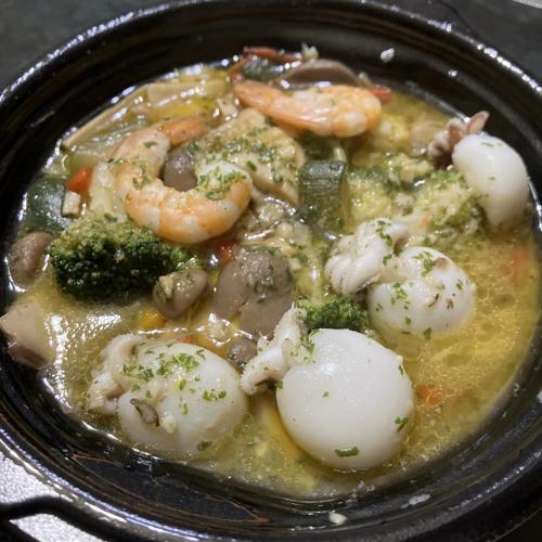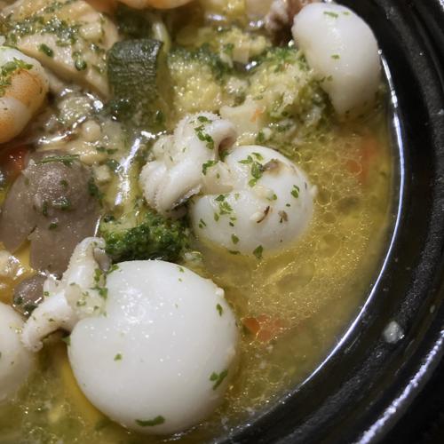 スープ(オイル)はアッツアツでまずこれが美味いです。紋甲いかは4つ入っていて、ややコリコリ食感。海老2尾はおまけ程度な量。きのこ自体も素材の良い美味しさ出ていますし、ブロッコリーも鉄板の美味しさ。ただニンニクの匂いが半日残るの注意です。