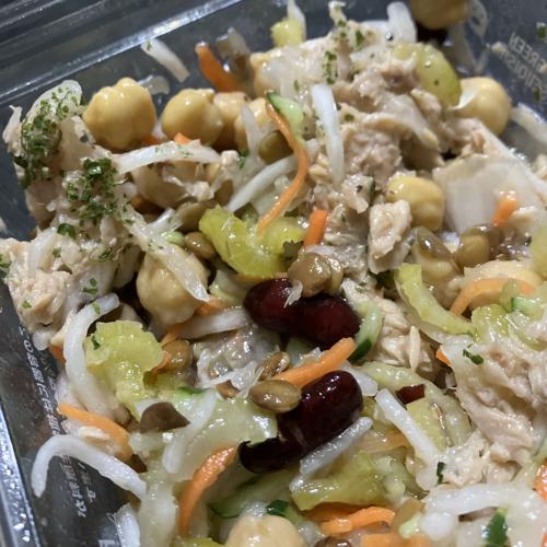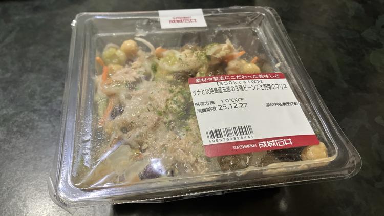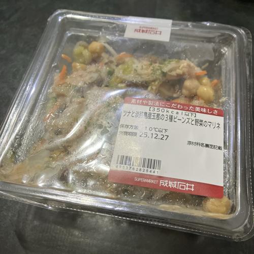 【食の記録】成城石井さんの「ツナと淡路島産玉葱の3種ビーンズと野菜のマリネ」を頂きました。