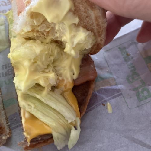 標準サイズ系、カラシマヨたっぷりでレタスの食感が良いです。ベーコンはあるけど主張控えめ。とても美味しかったです。