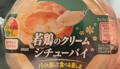 レンチンするだけで完成お手軽なシチューパイ。ホワイトシチュー部分は熱々です。チキンは胸肉か、あっさりとした美味しさ。そこそこコーン粒も入っています。かなり美味しかったです。