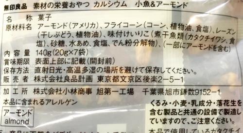 【食の記録】無印良品さんの「素材の栄養おやつ カルシウム 小魚&アーモンド」を頂きました。