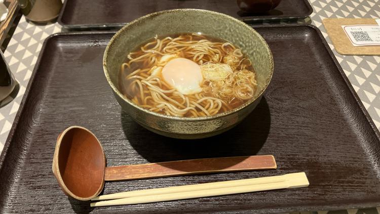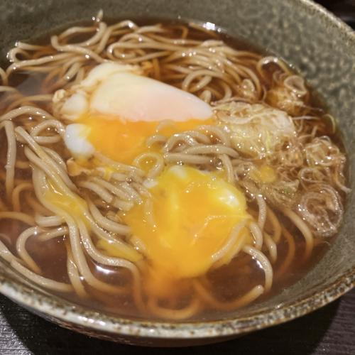 温玉月見蕎麦。とシンプル、温玉と蕎麦なシンプルな構成。そばはやや硬め、そば汁が飲みやすくて、蕎麦湯ですね。とても美味しかったです。