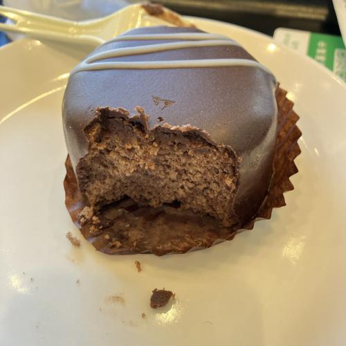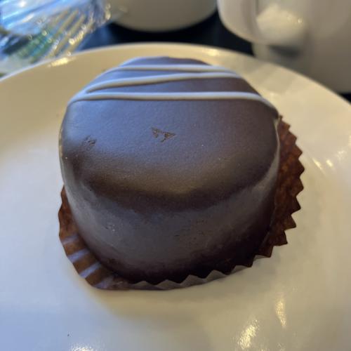 ザッハトルテは濃厚チョコ、どっしりしたイメージだが、こちらはチョコ感少なめで、スポンジも思ったよりふわりとしています。上部のすぐ直下部分でアプリコットジャム部分?なところで、多少砂糖のジャリジャリさとしっとりしたアクセントあります。とても美味しかったです。