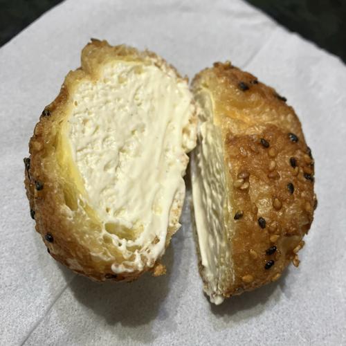 やや硬めな皮で、表面の胡麻粒がしっかりと良いアクセントになっています。クリームは軽めでコクがあり。とても美味しかったです。