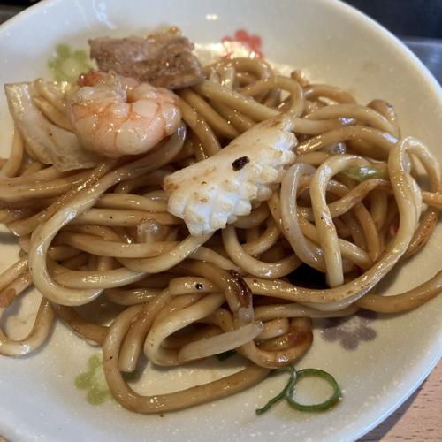 中太麺で豚肉、海老、イカがミックスされた焼そば。量は少なめ、ソースがよく絡んでいて、麺の食感良いです。大変美味しかったです。