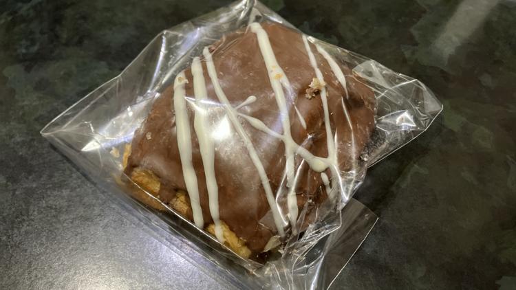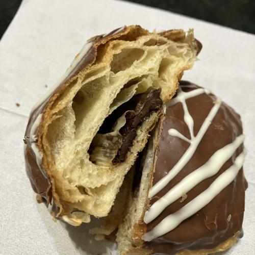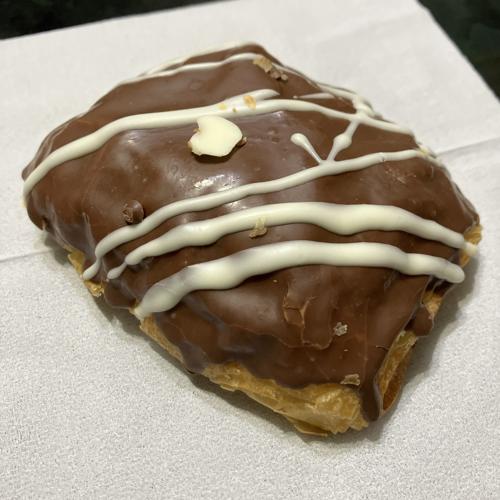 歯応えある食感のデニッシュ系生地に表面だけでなく、中にもチョコレートが入っていて、ショコラ三昧な味わい、絶妙なチョコバランスでクセになる美味しさです。