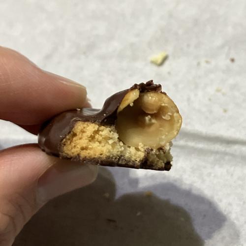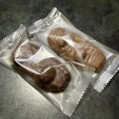 マカダミアナッツ+ミルクチョコとヘーゼルナッツ+ダークチョコなクッキーそれぞれ1枚ずつの組み合わせ。口当たりの良いチョコの味わいが広がり、ナッツ自体もとても美味しかったです。