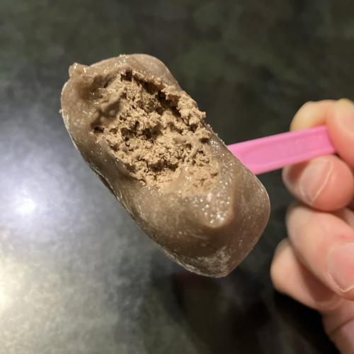 表面を覆うチョコ餅にすっきりしつつコクのあるチョコアイス。お餅は滑らかもちもち食感で雪見だいふくの良さが出ています。とても美味しかったです。