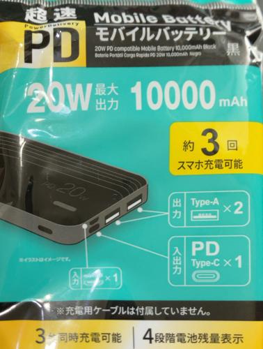 【購入記録】DAISO(ダイソー)さんの「PD対応 20W モバイルバッテリー 10000mAh 黒」を使ってみました。