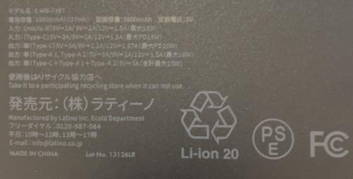 内容量:10000mAh
