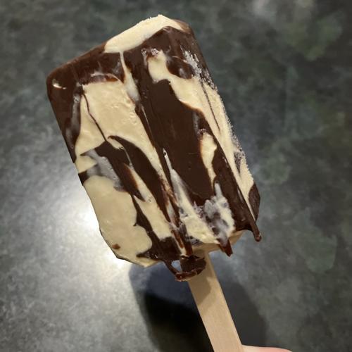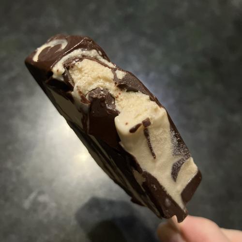表面が厚みある部分多しやバリバリチョコ+ミルクキャラメルアイス。お手頃価格なのにちょっと高級感のある味わい。かなりおすすめです。