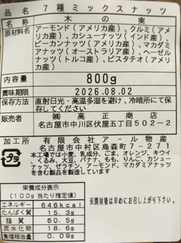 【食の記録】高正商店さんの「7種ミックスナッツ」を頂きました。