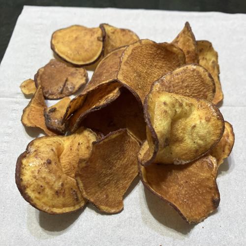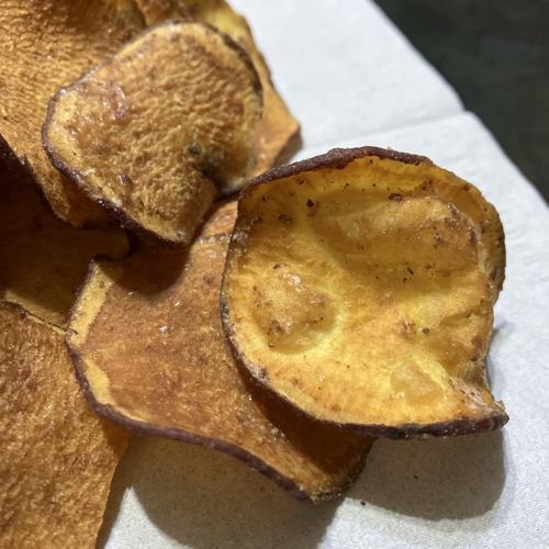 松浦食品×田子重さんコラボのさつまいもチップスシリーズ、焼きショコラ味です。チップス自体、やや厚めでバリボリ食感良く、さつまいものちょっと焦げた味わいがポイント高いです。ショコラ部分は表面やんわりショコラの味わいあるかどうか、な印象です。