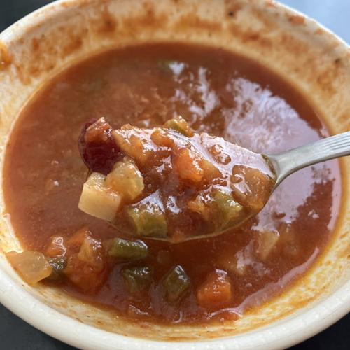 写真の通り、小さな賽の目状に切った色々な具材が入っています。バター的な味わいが強めで適度な酸味があり、美味しいミネストローネです。