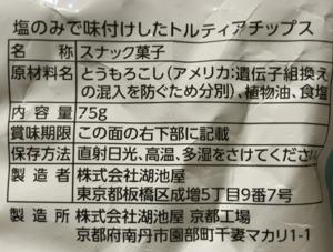 タコス的なサルサソースっぽい味がない塩だけでほんとシンプルなチップスです。素材路線の味わい。この形も癖になりそうですが、サルサソース付けた方が好みではあります。